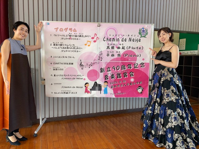 去る11月10日には、大平東小学校にて創立90周年記念のコンサートに出演させて頂きました。